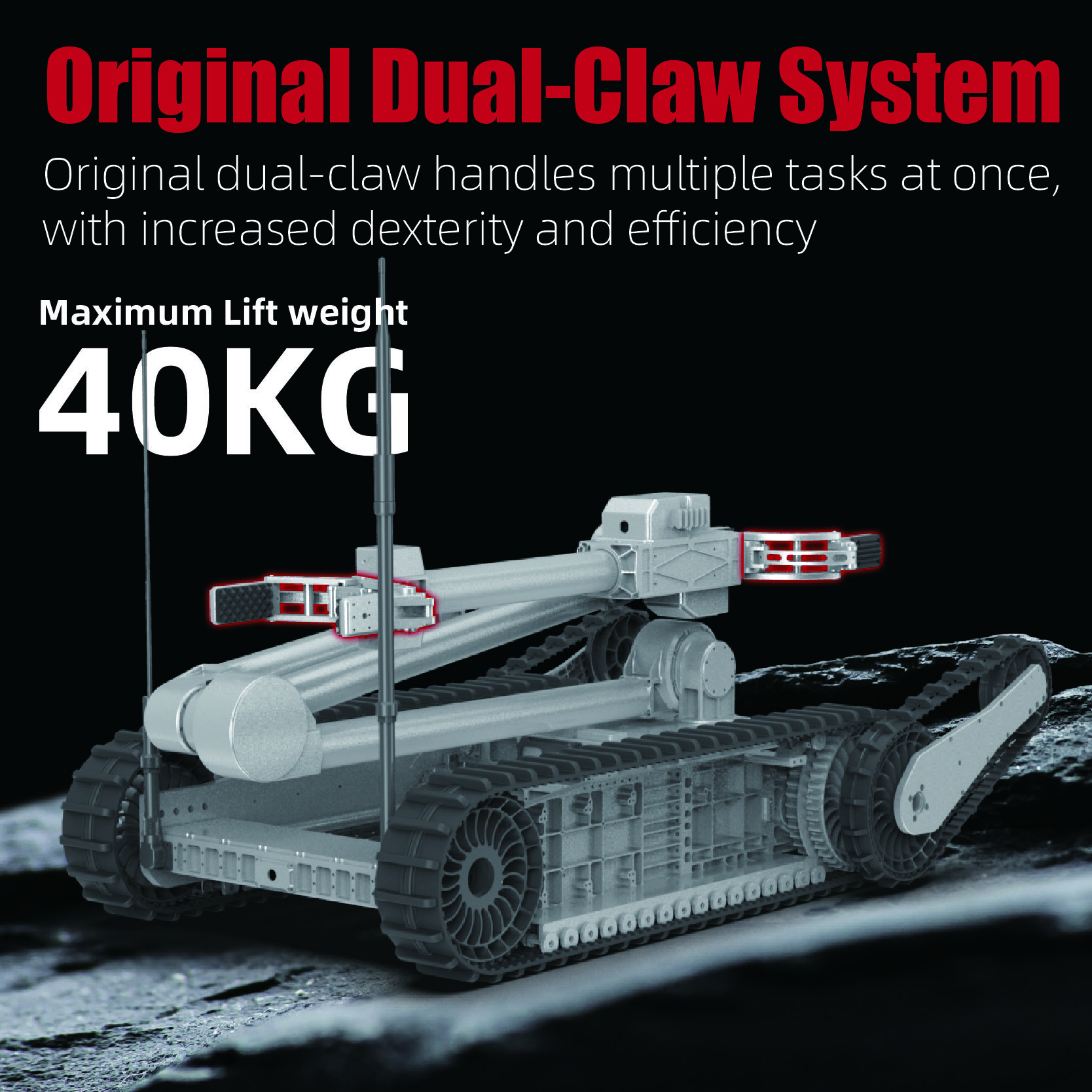 Die patentierte "Zwei-Klammern"-Konstruktion ermöglicht es dem JP REOD500, mehrere Aufgaben gleichzeitig zu lösen.zum Beispiel beim Öffnen von Türen oder beim Ausführen anderer Hilfsaufgaben Gegenstände zu greifen, so dass es für EOD-Missionen sehr effektiv ist.
